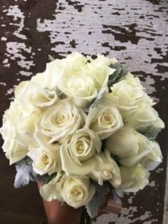 Colour rose of brides choice of 30 stems of premium rose blooms finished off with your choice of green or silver foliage. Brides choice of stems bound with Satin, organza, Burlap or lace ribbon.